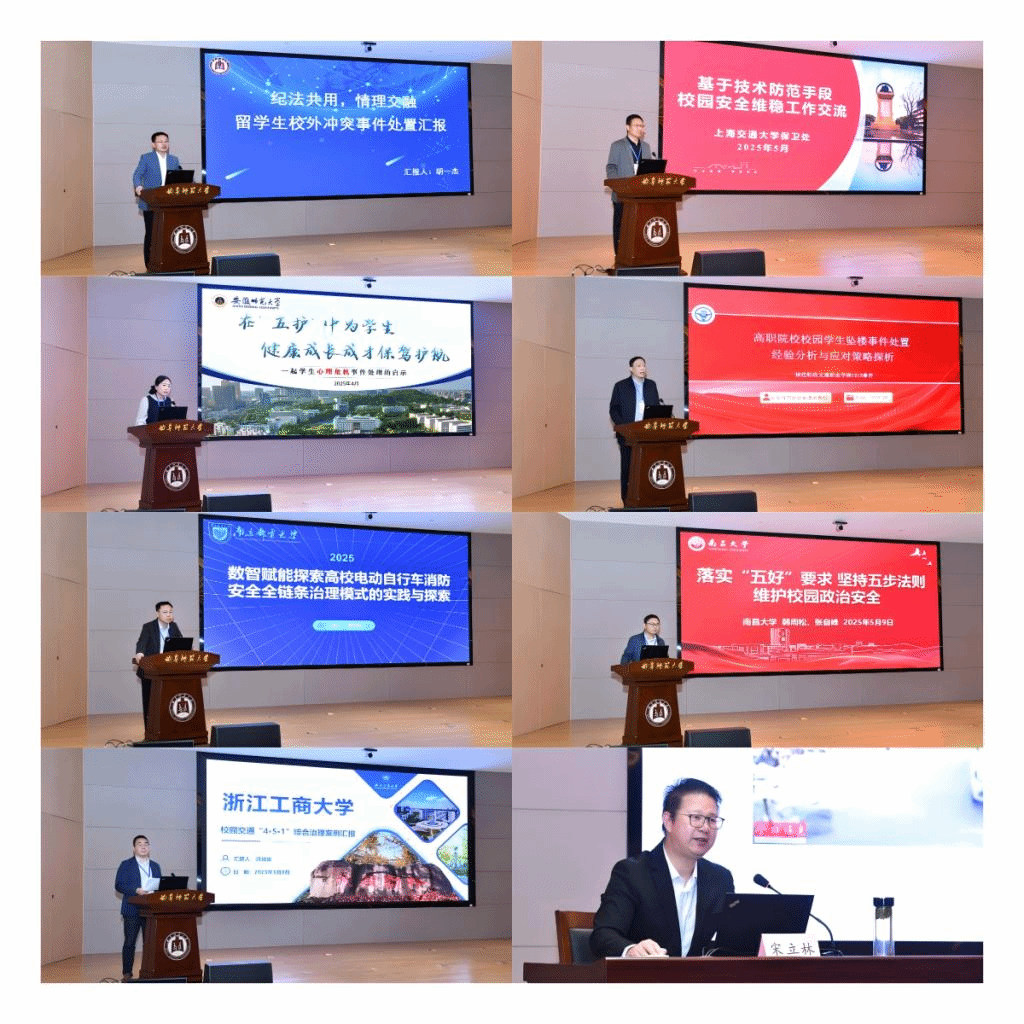聚焦校园安全管理,上海交通大学、安徽师范大学、福建船政交通职业学院、南京邮电大学、南昌大学、曲阜师范大学、浙江工商大学7所高校的与会代表依次分享了安全管理优秀案例,内容涵盖技术防范、心理干预、应急事件处置等多领域实践成果,为高校安全管理提供了多维度借鉴。本次会议为华东地区高校安全工作者搭建了宝贵的学习交流平台,起到了分享经验、凝聚共识、助力平安校园建设的良好作用。