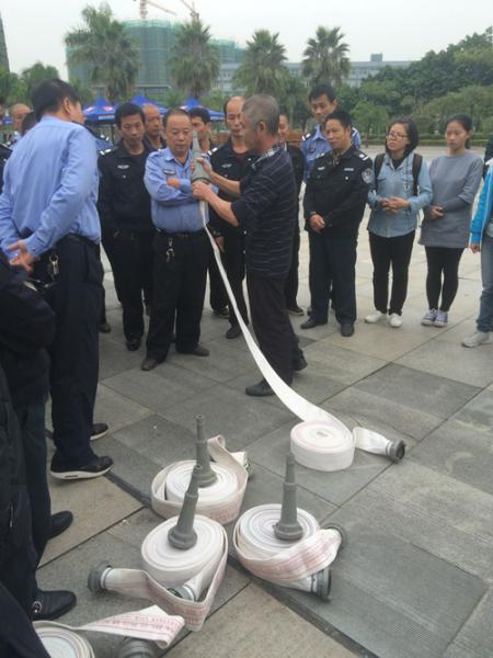 2016年12月1日,我校组织保卫处、后勤管理处新入职人员和全体学生义务消防队队员在弦歌广场进行消防培训,参加培训一百余人。本次培训内容为抛、接水枪水带和灭火器的使用,要求在火灾情况下,熟练使用消防栓和灭火器进行灭火。培训讲解完后,大家实地进行了演练。