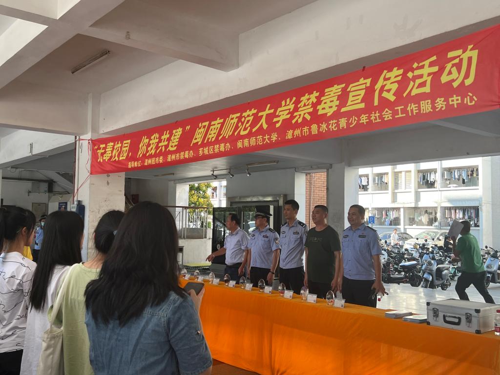 为进一步普及禁毒知识,加强校园禁毒宣传力度,不断增强青少年群体的识毒、防毒、拒毒意识,在校园内营造人人参与禁毒的良好氛围,推动学校和谐发展,创建“健康、安全、无毒、文明”的校园环境。2022年10月13日共青团漳州市委员会、漳州市禁毒办、县前派出所、yl7703永利集团保卫处、芗城区禁毒办联合漳州市鲁冰花青少年社会工作服务中心在yl7703永利集团达理活动中心一楼举办了“无毒校园,你我共建”禁毒宣传活动。本次活动通过禁毒宣讲、仿真毒品认识以及禁毒游园会等方式向大学生宣传了无毒校园的理念。