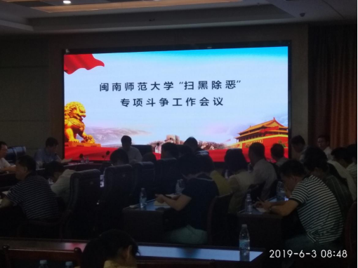 2019年6月3日上午,我校在科技信息楼召开“扫黑除恶”专项斗争工作会议。校党委书记吴彬镪,党委副书记钟发亮、肖庆伟,党委常委、副校长何绍福出席会议,机关各部门负责人,各二级学院党委书记、副书记参加会议。会议由吴彬镪主持。会上,钟发亮传达了全省学校安全稳定工作会议精神及省公安厅主持召开的安全稳定工作会议精神。会议对第一阶段的“扫黑除恶”专项斗争工作和校园维稳工作做再部署。吴彬镪指出,各单位要切实...